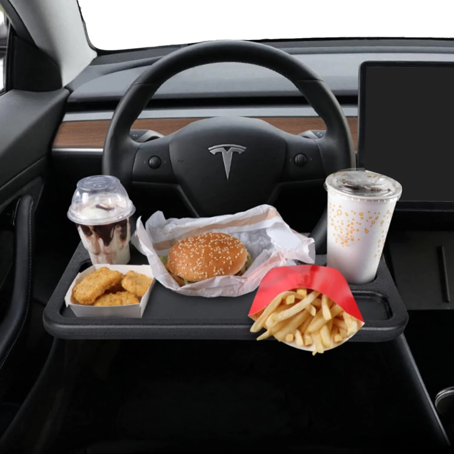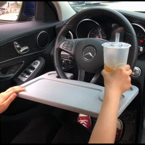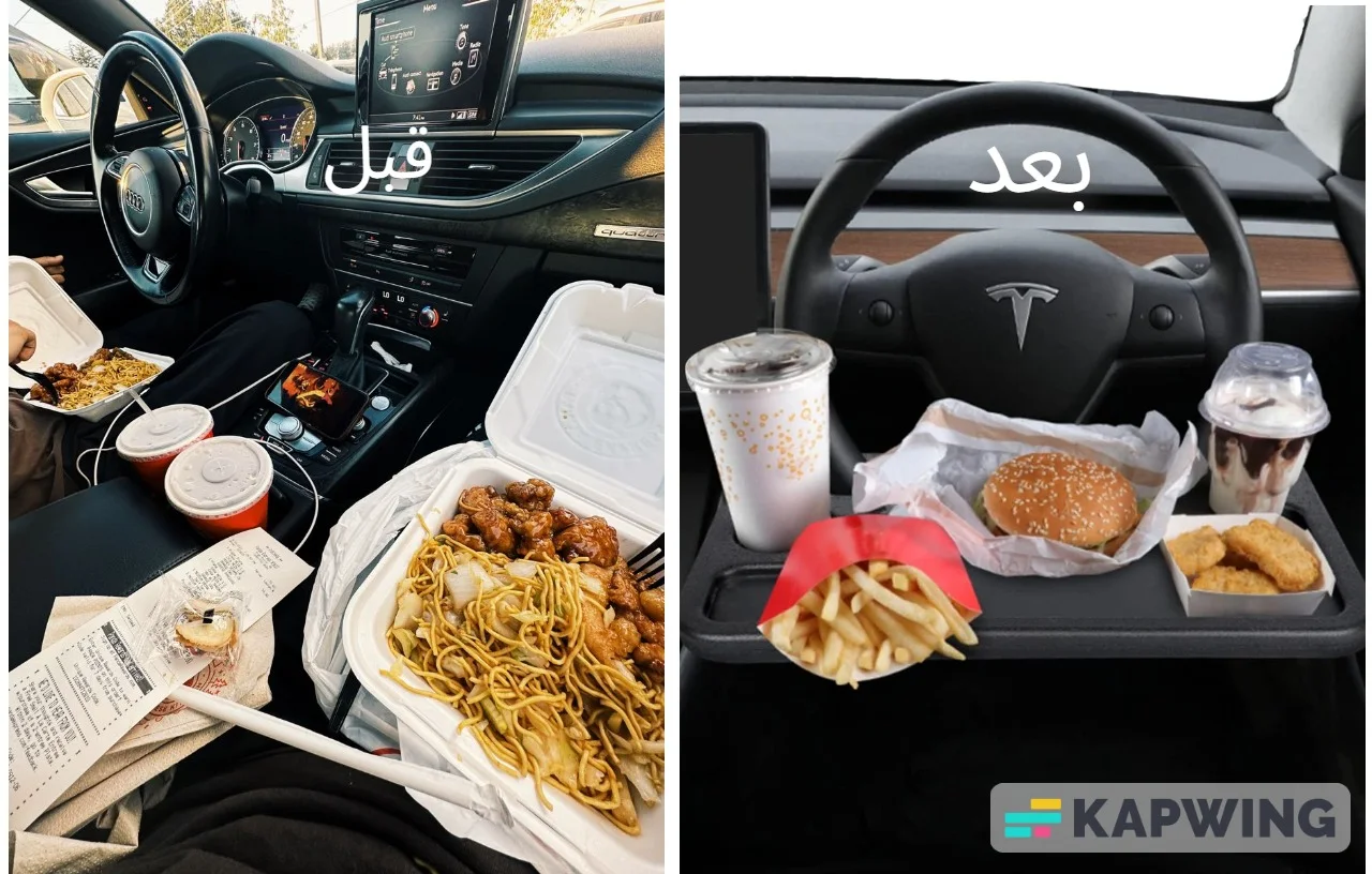 ✅ وجهين للاستخدام: جهة مخصصة للأكل (مع مكان للكوب) وجهة مستوية تماماً للعمل واللابتوب.
